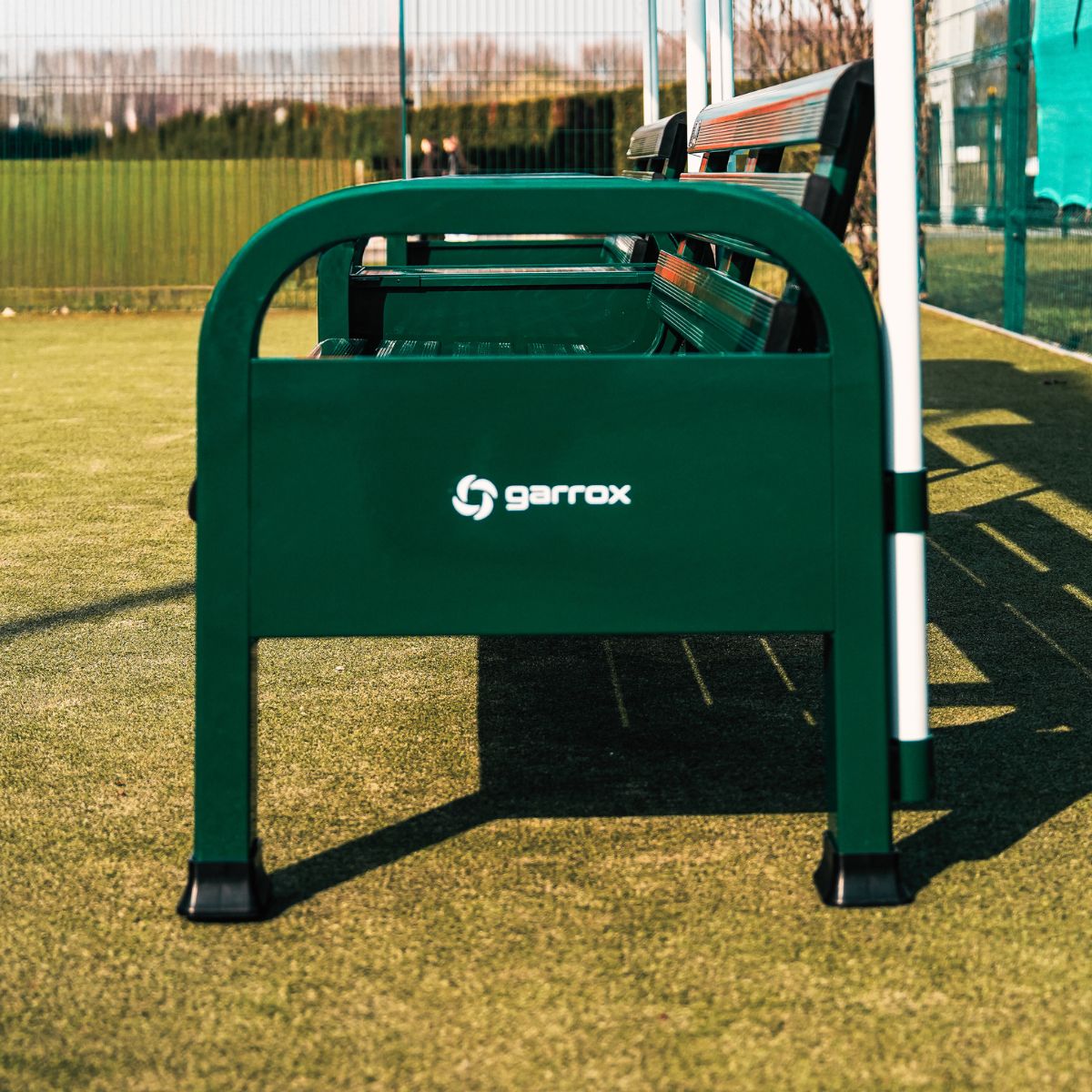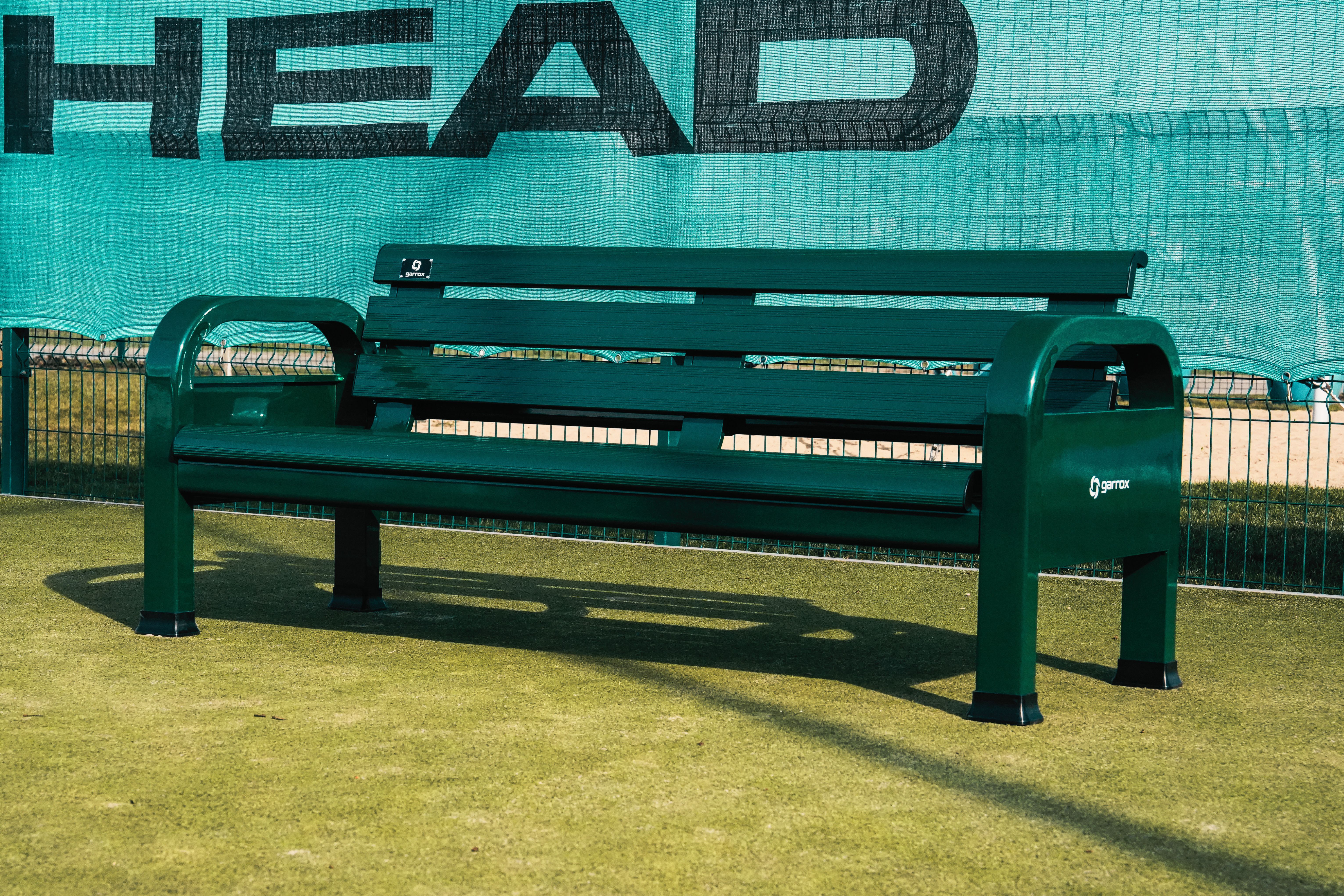 Ławka tenisowa Garrox Premium Grand Slam z oparciem to profesjonalna ławka stworzona z myślą o prestiżowych obiektach tenisowych i turniejach najwyższej rangi. Wykonana z wytrzymałego, wytłaczanego aluminium, pokrytego powłoką proszkową, gwarantuje trwałość i odporność na warunki atmosferyczne. Dzięki antypoślizgowym gumowym nóżkom, może być używana na każdej nawierzchni kortu bez ryzyka jej uszkodzenia.