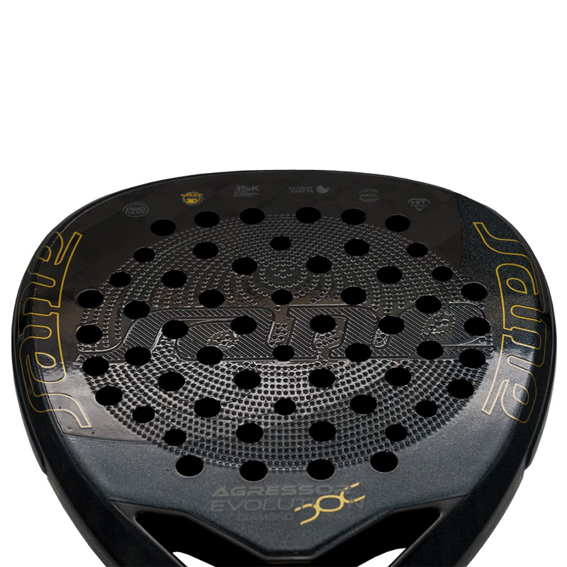 Rakieta SANE Aggressor Evolution Diamond Omega została stworzona dla graczy ofensywnych, którzy szukają wysokiej wydajności i kontroli również w wolniejszych wymianach. Diamentowy kształt główki zapewnia wysokie wyważenie, idealne do generowania mocy w każdym uderzeniu i dominacji agresywnej gry od pierwszego punktu. Wykonana z włókna 15K „2 tw 1” Carbon i wyposażona w rdzeń PRO REACTIVE, oferuje średnie czucie piłki i doskonałe odbicie, pozwalając płynnie dostosować się zarówno do wolnego, jak i szybkiego tempa gry. Dodatkowo nowa powierzchnia z wytłoczeniem 3D Mold Spin zwiększa tarcie z piłką, umożliwiając bardziej efektywną rotację w slice’ach i topspinach.