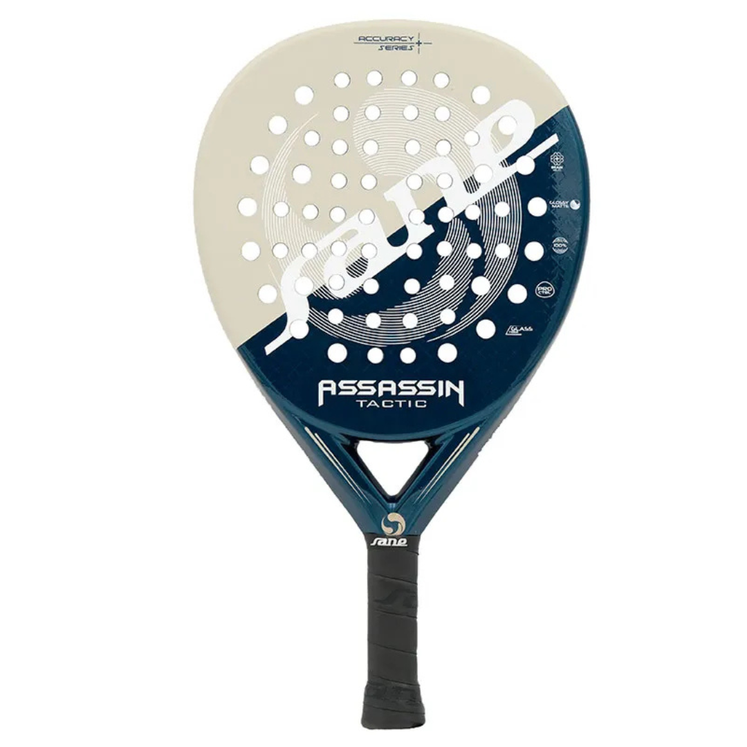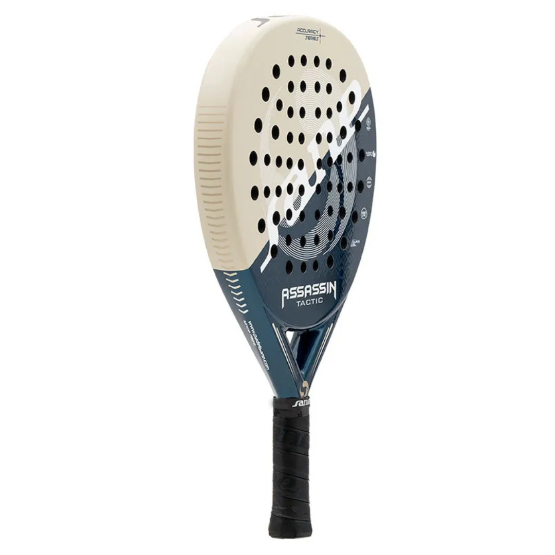 Rakieta Assassin Tactic ma okrągły kształt główki, który zapewnia wysoką kontrolę nad piłką i precyzyjne uderzenia. Wykonana w całości z włókna węglowego z płytą 3K Carbon oraz wypełnieniem Super Compact, gwarantuje stabilność i pewne czucie piłki. Średnie wyważenie oraz matowe, szorstkie wykończenie Rugosa umożliwiają generowanie rotacji, co sprawia, że rakieta jest idealna dla graczy stawiających na kontrolę.